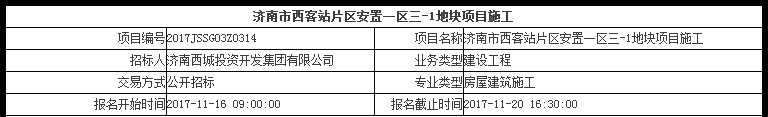 1、項目名稱:濟南市西客站片區安置一區三-1地塊項目施工;建設單位:濟南西城投資開發集團有限公司。