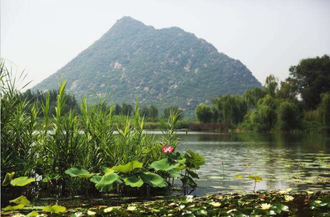 濟南華山又名華不(fū)注山,其名取自于《詩經(jīng)·小雅·常棣》,其詩曰:“常(棠)棣之華,鄂不??”。“華”即“花”,“鄂不”即“萼跗”,謂之花蒂。山名“華不注”,意為此山如花跗注于水中。經(jīng)過緊張的恢復整治,目前,“華不注”的山水勝景初現(xiàn),“水中起芙蓉”的旖旎景觀又一次展現(xiàn)在世人面前。
