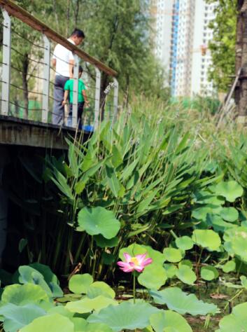 濕地園林一期景觀栽種了100多種植物,有旱柳、國槐等濟南本地樹種,還有荷花、蘆葦?shù)?0多種水生植物,良好的生態(tài)環(huán)境吸引了不少白鷺、??等鳥類棲息,“棹動芙蓉落,船移白鷺飛”。
