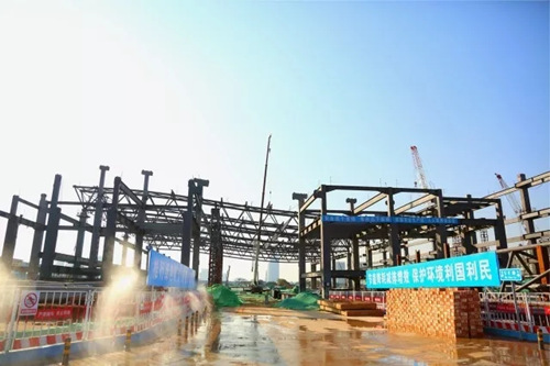 位于項(xiàng)目最南側(cè),最先開工的五號(hào)展館主體鋼結(jié)構(gòu)已基本完成。
