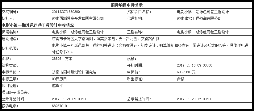 電影小鎮一期濼邑司巷工程設計中標公示