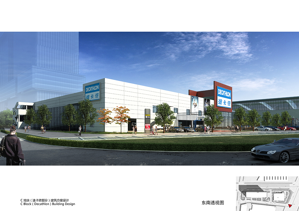 迪卡儂項目總計四層,地上共2層,地上建筑面積約9575平方米,首層使用功能為購物停車,二層功能為超市賣場及辦公附屬用房。地下共2層,為鋼筋混凝土框架結構,主要功能為停車,停車方式是單層停車。停車場總共有三萬多平方米,預計擁有車位1300個,為顧客解決了停車問題。