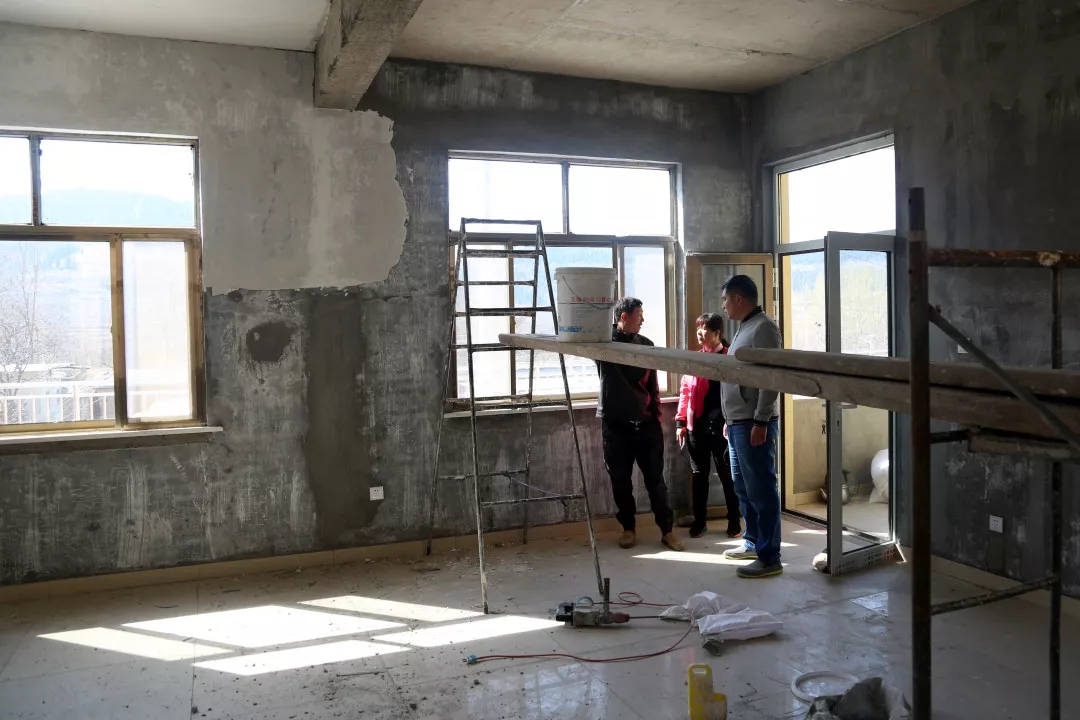 10:15王棟棟和任書記來到了即將建成的大黃崖村黨群服務(wù)中心,督促落實服務(wù)中心的收尾工作。這處600平方米的村級辦公場所和幸福院,是整合了集團幫扶資金、民政資金、企業(yè)捐助資金共計74萬元建設(shè)的,計劃在5月底前正式投入使用。