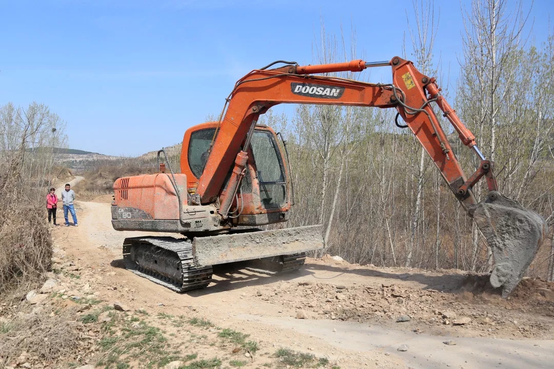 11:20王棟棟和任書記在生產(chǎn)路整修現(xiàn)場。村北側(cè)的生產(chǎn)路是連通大黃崖村與農(nóng)田果園的道路,也是通往鄰村陶裕村最便捷的道路。去年受大雨影響,道路嚴(yán)重受損,隨時有塌陷的危險,給群眾生產(chǎn)生活帶來諸多不便。他帶領(lǐng)村兩委和部分黨員群眾,利用三天時間對道路進(jìn)行了修復(fù),搶修出了一條臨時通道。要徹底解決道路塌陷問題,就一定要重新翻修,日前,他從縣交通部門爭取的資金已經(jīng)到位,施工隊伍已進(jìn)場施工,目前正處于找平碾壓過程中,很快就將進(jìn)行道路硬化,一周時間即可恢復(fù)通行。