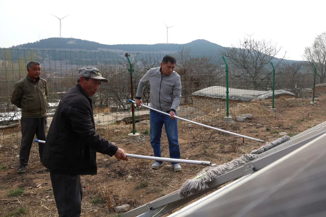 13:30沿著陡峭山路晚上走,王棟棟來到了村里的光伏發(fā)電項目,“有兩塊光伏板壞掉了,要及時向扶貧辦報修調(diào)換,不然會影響發(fā)電量”。王棟棟叮囑管理人員。報修完之后,王棟棟和維護人員一起對光伏板進(jìn)行擦洗維護。