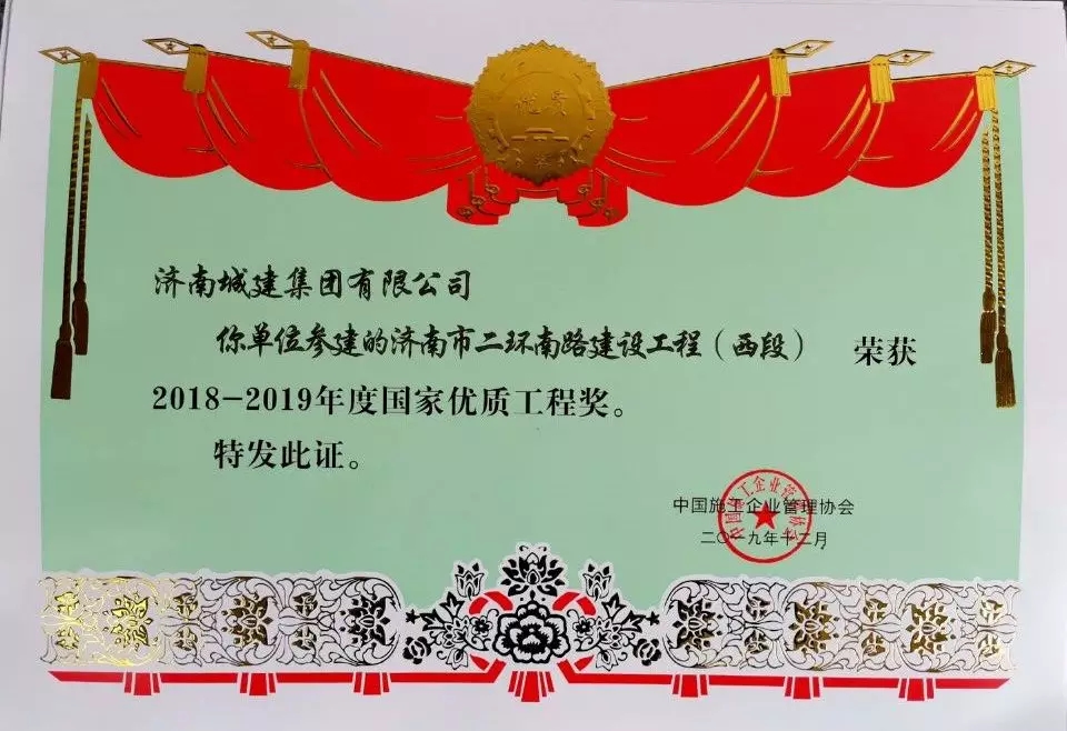 近日,中國(guó)施工企業(yè)管理協(xié)會(huì)在國(guó)家會(huì)議中心召開“2019年國(guó)家優(yōu)質(zhì)工程獎(jiǎng)總結(jié)表彰大會(huì)”,來(lái)自工程建設(shè)領(lǐng)域的各關(guān)聯(lián)協(xié)會(huì)及建設(shè)、勘察、設(shè)計(jì)、施工、監(jiān)理等700余家單位的1500名代表參加了會(huì)議。由濟(jì)南城市建設(shè)集團(tuán)所屬濟(jì)南黃河路橋建設(shè)集團(tuán)有限公司、濟(jì)南城建集團(tuán)有限公司分標(biāo)段承建的濟(jì)南市二環(huán)南路建設(shè)工程(西段)榮獲“2018-2019年度國(guó)家優(yōu)質(zhì)工程獎(jiǎng)”。