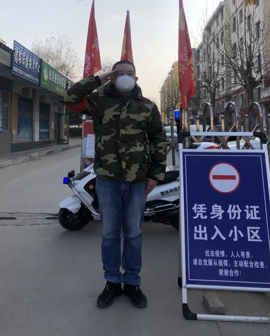 “身為曾經的軍人,身為一名共產黨員,我必須要站在前面,作表率,當先鋒”,王銳說道。他服務的清華園小區,有1304戶3300余名居民,經前期當地街道和社區工作人員走訪,共排查出外地返濟需留觀人員24戶47人,目前還在留觀戶數10戶。這10戶居民在留觀期間是否有外出,對于整個濟陽街道的防疫防控工作尤為重要,經過幾天的熟悉王銳已經對10戶居民的家庭住址爛熟于心,在往返的車流和人群中,他仔細的甄別著每一名居民的出入證和身份證,和心中的名單一一對應,確保留觀人員在留觀期間不出小區一步。這一站,就是九個小時,但他依然昂首挺立,曾經軍人的模樣又浮現出來。幾天的值守,他已經將小區3300余名居民當親人般守護,他謹記軍人使命和共產黨員擔當,當好防控一線排頭兵。