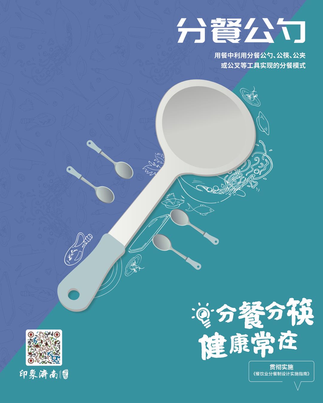 本次的宣傳材料主要以分餐分筷為主題,由“分餐位上”“分餐自取”“分餐公勺”展示給商家。“分餐位上”主要是按就餐人數把餐品分為單人份,每人一份呈現于餐桌,避免人群的過多接觸,不交叉、無混淆的分餐模式。如果就餐人數過多的情況下,這樣把餐品分好,可最大限度避免人群接觸。分餐分筷可以大幅度阻擋病毒的傳染,讓每個人都有自己單獨的一份餐,干凈又衛生!分餐自取主要是由使用獨立餐具,由用餐者實現分餐模式。比如像在肯德基,商家都會把吸管單獨擺放一個位置,由用餐者自取,這樣就比較好理解了~而分餐公勺呢,就是我們在餐廳用餐時,每一份餐都由分餐公勺分好,如果是在商家用餐,個人分餐的話,建議戴上一次性手套。