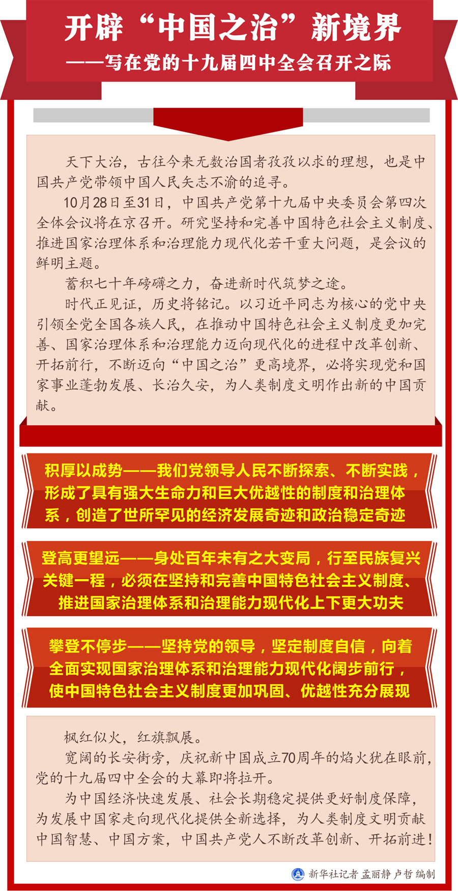 寬闊的長(zhǎng)安街旁,慶祝新中國(guó)成立70周年的焰火猶在眼前,黨的十九屆四中全會(huì)的大幕即將拉開。