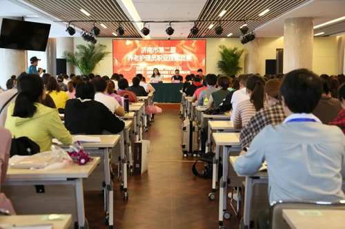 在濟(jì)南市第二屆養(yǎng)老護(hù)理員職業(yè)技能競賽中,金齡健康·山東濟(jì)南養(yǎng)老服務(wù)中心護(hù)理院的多名護(hù)理員獲得殊榮。“通過競賽,我們學(xué)到了很多權(quán)威的護(hù)理知識,更認(rèn)識了很多優(yōu)秀的專業(yè)人才,我們把這些結(jié)合到臨床中,不斷提高自己的護(hù)理能力,除了比賽,我們?nèi)粘9ぷ髦幸灿泻芏嗟膶W(xué)習(xí)提升計(jì)劃,我們有信心學(xué)好這個(gè)專業(yè)、做好這份工作”,護(hù)理員劉新新說道。