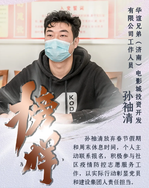 新型冠狀病毒肺炎疫情發生以來,濟南城市建設集團認真貫徹落實中央、省、市關于疫情防控和復工復產的決策部署,上下一心、眾志成城,全體干部職工恪盡職守、扎根一線,全員全力投入到疫情防控阻擊戰中。期間,涌現出了眾多先進典型和感人故事,用實際行動詮釋了建設集團人的精神風貌和責任擔當。我們在集團宣傳平臺《榜樣》欄目,推出系列人物報道,挖掘宣傳一線典型,提振士氣、凝聚力量,激勵我們繼續前行,堅決打贏疫情防控的人民戰爭、總體戰、阻擊戰。