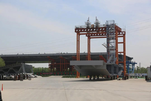 目前,各區域施工全面展開,項目參建人數近500人,主橋鋼箱梁頂推施工采取三班倒24小時飽和施工,經過全體人員199天的連續奮戰,4月30日項目成功將北跨280米鋼箱梁平移980米橫跨黃河,完成鋼箱梁黃河北岸落梁。420米中跨鋼箱梁正在吊裝頂推作業,已累計頂推260米。