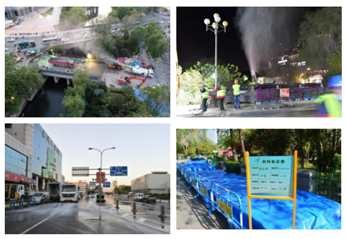 現場通過抑塵車霧炮、灑水車、清掃車連續作業,物料嚴密覆蓋,最大程度抑制揚塵。