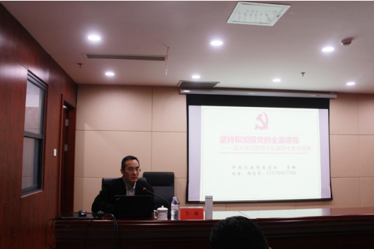 李琳教授就《堅持和加強黨的全面領(lǐng)導---深入學習貫徹黨的十九屆四中全會精神》進行了系統(tǒng)闡述和深入解讀。從理論依據(jù)、現(xiàn)實依據(jù)方面,為我們解讀了堅持和加強黨的全面領(lǐng)導的必然性。通過如何處理好四種關(guān)系解讀了堅持和加強黨的全面領(lǐng)導的豐富內(nèi)涵,解讀了中國共產(chǎn)黨長期執(zhí)政的合法性。