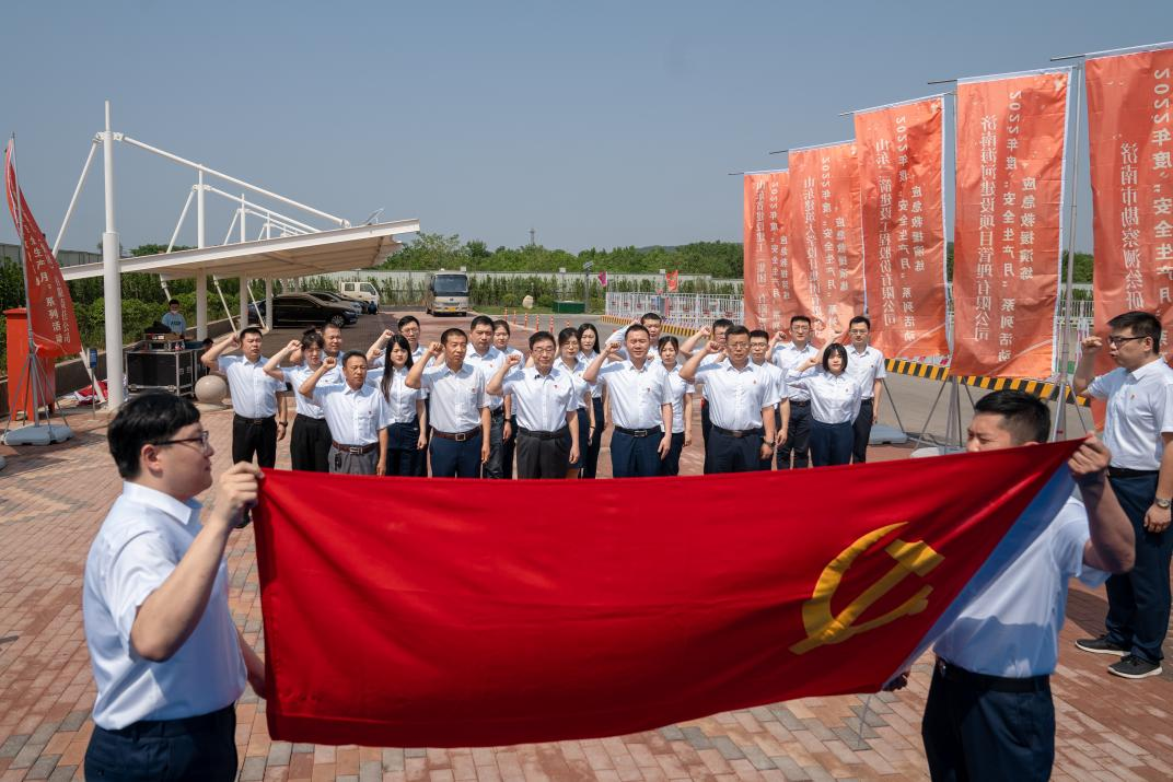 企管與法務質安黨支部、工程五部黨支部在泰山生態環境研究所項目聯合開展“七一”重溫入黨誓詞主題黨日活動,黨支部成員進行現場宣誓,再次接受入黨誓詞洗禮,進一步堅定理想信念。并觀摩項目現場,實地了解了科創城片區項目概況及進展情況,就相關工作進行交流討論,提升了組織凝聚力、向心力和戰斗力。