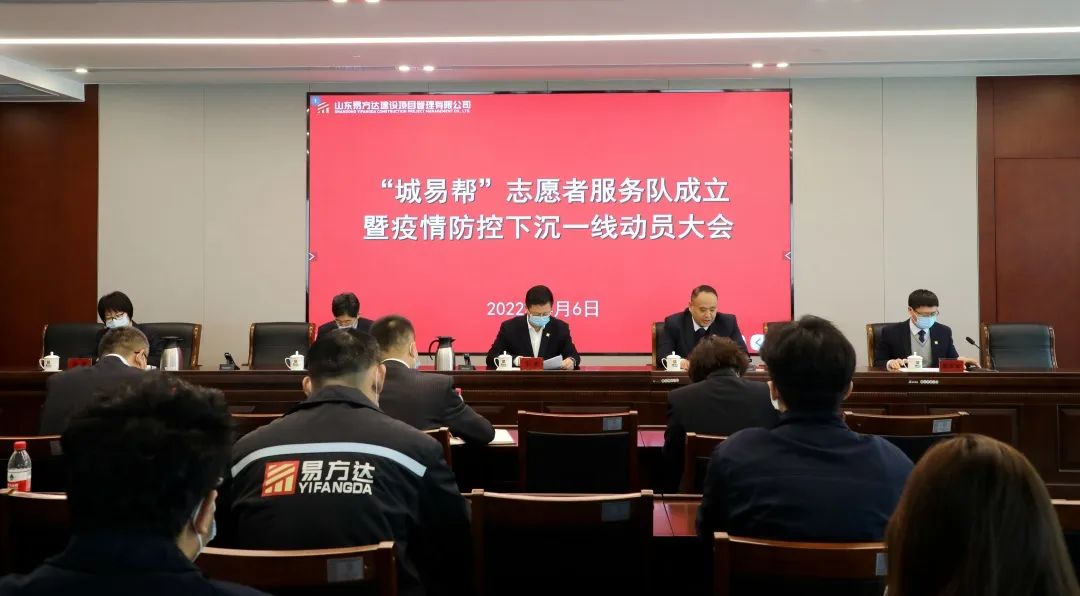 會議宣讀了公司工會關(guān)于《山東易方達(dá)建設(shè)項(xiàng)目管理有限公司關(guān)于成立“城易幫”志愿者服務(wù)隊(duì)的決定》,公司黨委書記、董事長牛勇向“城易幫”志愿者服務(wù)隊(duì)進(jìn)行授旗。