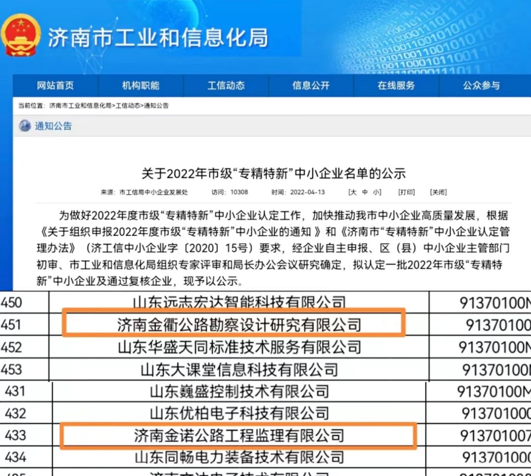 近日,濟南市工業和信息化局公布了2022年市級“專精特新”中小企業名單,金衢公司、金諾公司同時榮獲濟南市“專精特新”企業榮譽稱號。