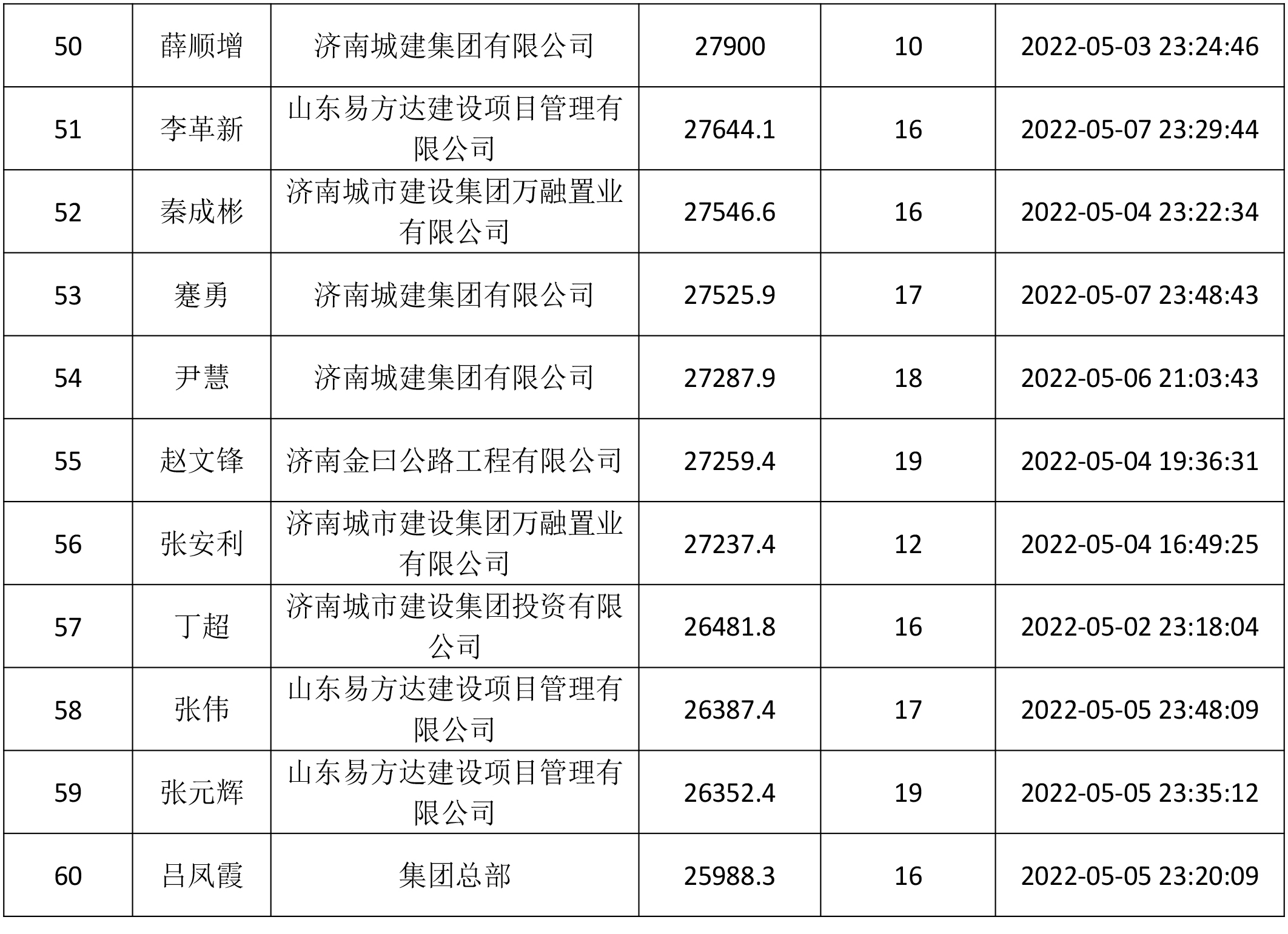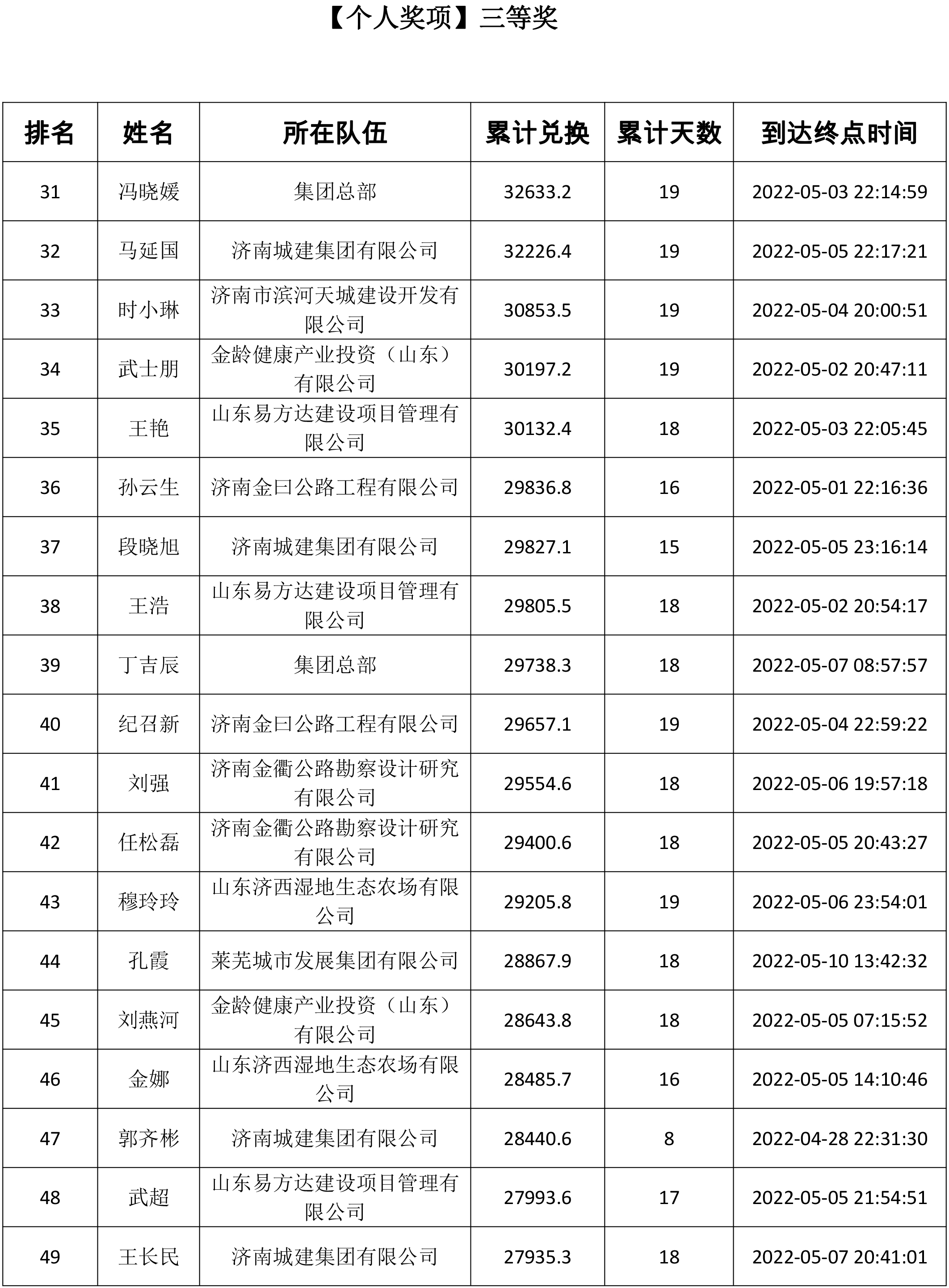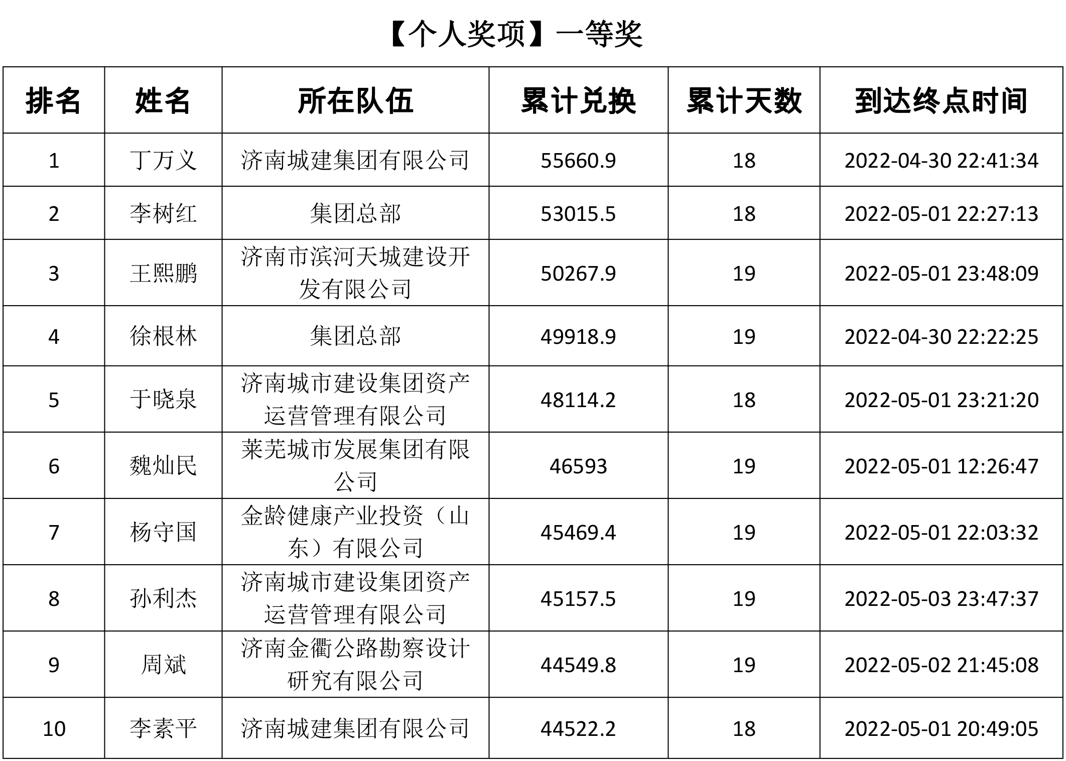 【建設青春】青春有夢 建設無疆| 濟南城市建設集團職工線上健步走活動成績公示