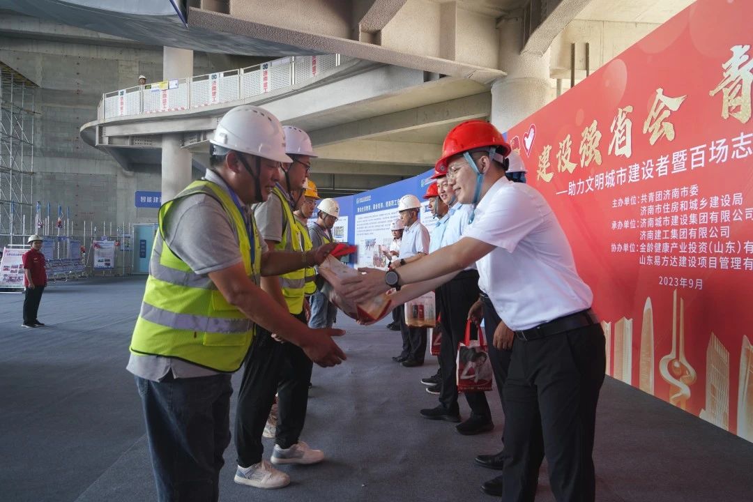活動中,共青團濟南市委相關負責同志為濟南市志愿服務進項目實踐基地授牌;濟南建工集團相關負責同志致辭;參會領導為工人代表發放慰問品并參觀中科院項目志愿服務開展情況。