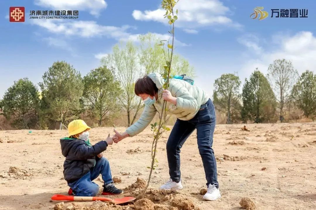 萬融置業(yè)有限公司聯(lián)合濟南市城鄉(xiāng)建設發(fā)展服務中心開展義務植樹活動,并組織業(yè)主開展“植此青綠 濕地長青”露營活動