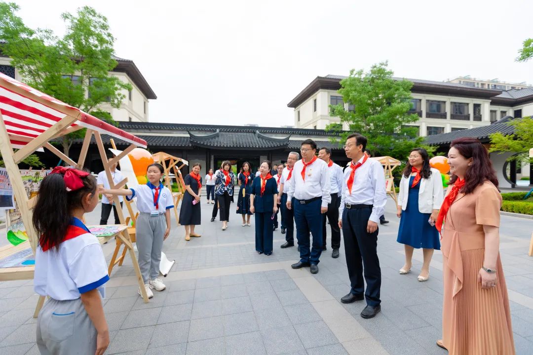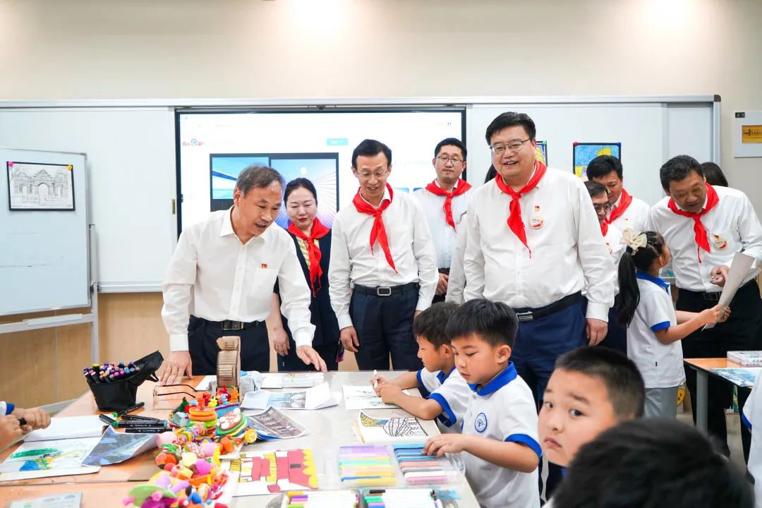 活動結束后,孫常建一行在楊柳春風學校進行了實地參觀調(diào)研,了解了書香校園建設活動,并與孩子們進行了親切交流。孩子們熱情洋溢地介紹了“槐蔭少年說”黨團隊一體化品牌建設活動、“我是黃河岸邊好少年”黃河文化項目化學習特色課程、“我眼中的康養(yǎng)名城、活力槐蔭”畫展和手工展、“家住槐蔭‘育’見成長”教育品牌、學校校訓和南北融合辦學理念等情況,并進行了古箏、寫生、經(jīng)典誦讀等美育教育特色活動表演,美術社團、舞蹈社團、合唱團、足球社團、啦啦隊的成員代表們進行了成果展示。