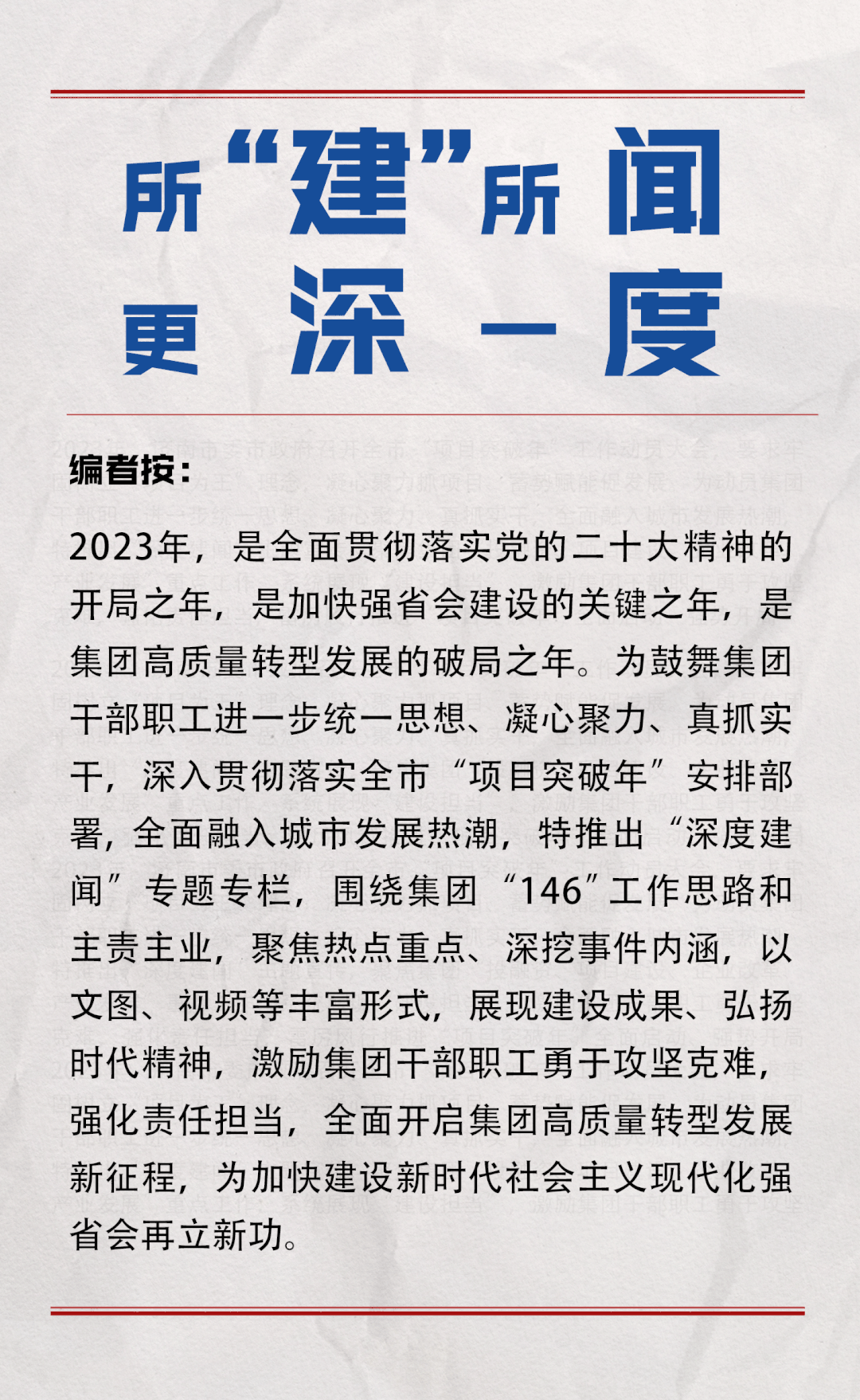 濟南城市建設集團因城市開發(fā)建設而生,也因城市開發(fā)建設而興。濟南城市建設集團將堅守城市開發(fā)建設的主戰(zhàn)場,堅持“項目為王”的理念,恪守初心,腳踏實地,繼續(xù)承擔起城市開發(fā)建設的重任,扎實推進“項目突破年”全面啟動、強勢開局,為強省會建設貢獻力量。