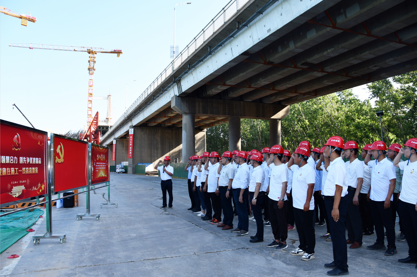 項目部充分發揮黨員先鋒模范帶頭作用,積極成立黨員突擊隊、青年突擊隊,劃分“黨員責任區”,設立“黨員先鋒崗”,靶向聚焦,先鋒突擊,以“大干快上”扛起政治責任,做到抓關鍵、補短板、強弱項,層層落實管控責任,合力推動工程建設提質增效。