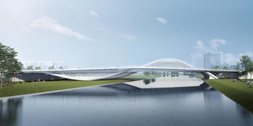 橫二路大寺河橋由世界著名橋梁設計師Marc MIMRAM先生主設計,由建設集團所屬濟南城建集團公司承建。橋梁全長150.16m,采用鋼結構梁拱組合體系一跨跨越大寺河,橋面總寬37m,道路寬度42m,雙向六車道,橋梁鋼結構總鋼材用量約4197噸。