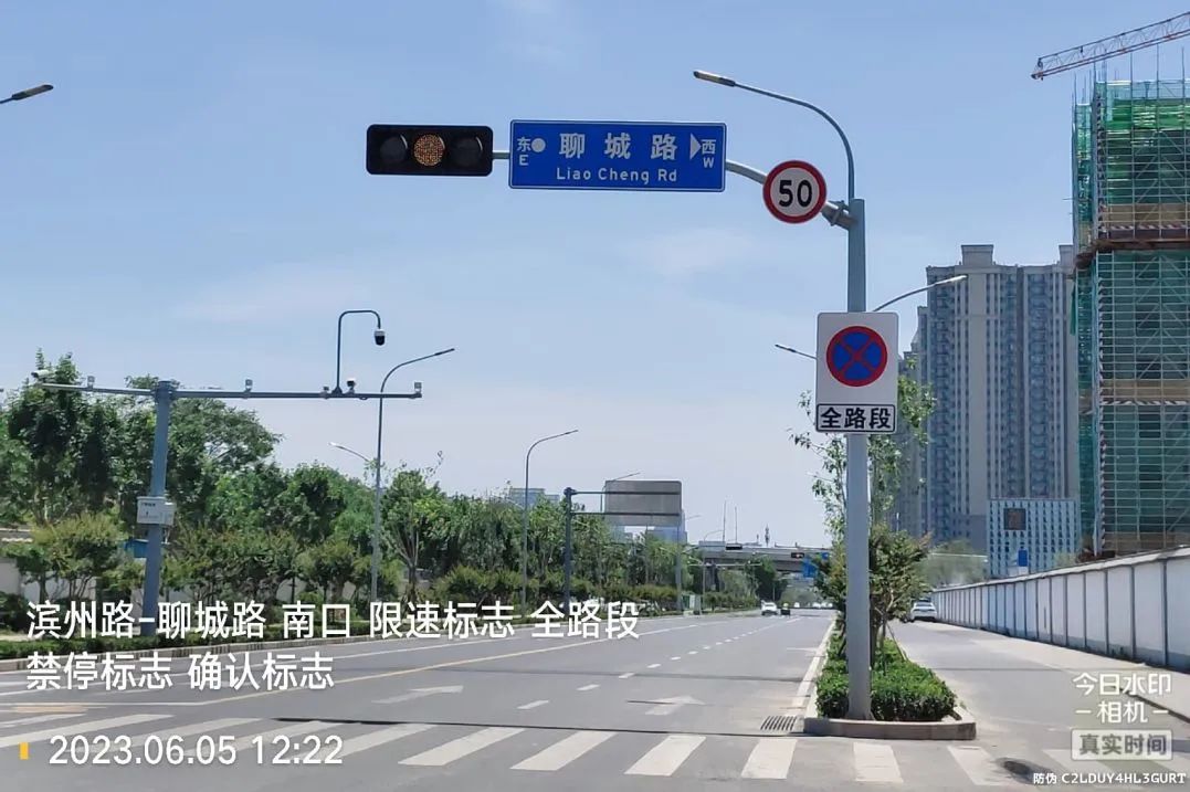 此次驗收共涉及德州路(臘山河西路-濱州路)、聊城路(臘山河西路-淄博路)、濱州路(清源路-日照路)3條城市次干路的交通安全及管理設施,經參建單位對該項目總體情況匯報,市交警支隊、槐蔭交警大隊對相關資料進行審閱,現場抽驗項目情況等綜合評定,認定3條城市次干路交通安全及管理設施項目通過驗收。