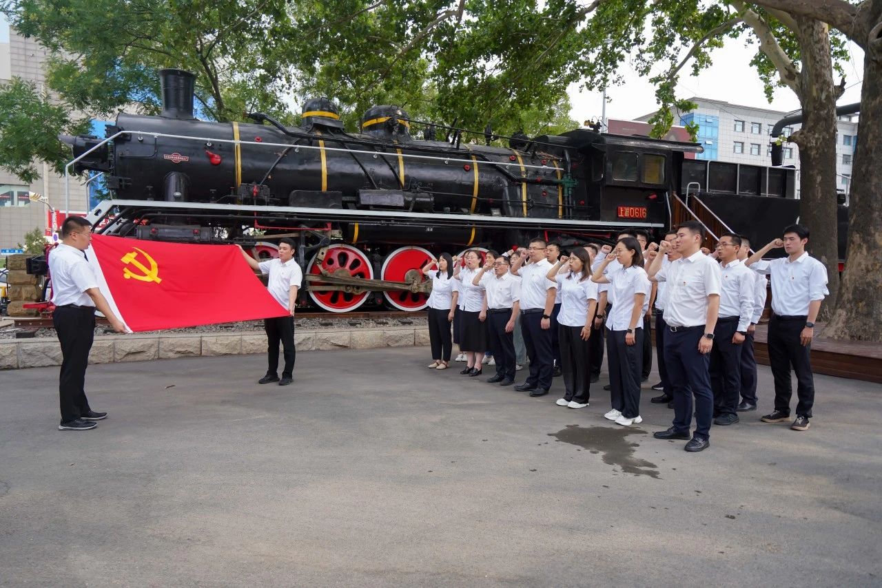 展館內,在工作人員的帶領和講解下,黨員們先后參觀了“膠濟鐵路的修建背景及過程”“對山東社會經濟發展的影響”“風雨滄桑路”“邁向新時代”等四個主題展區,多維度了解膠濟鐵路的歷史背景、滄桑變遷、紅色故事等,回顧膠濟鐵路建設發展的百年歷程,學習老一輩“鐵軍”開創、探索、鉆研和拼搏奉獻精神,感受如今鐵路建設取得的輝煌成就。參觀結束后,全體黨員來到博物館院內,重溫入黨誓詞,表達了對黨的忠誠和為人民服務的堅定決心。