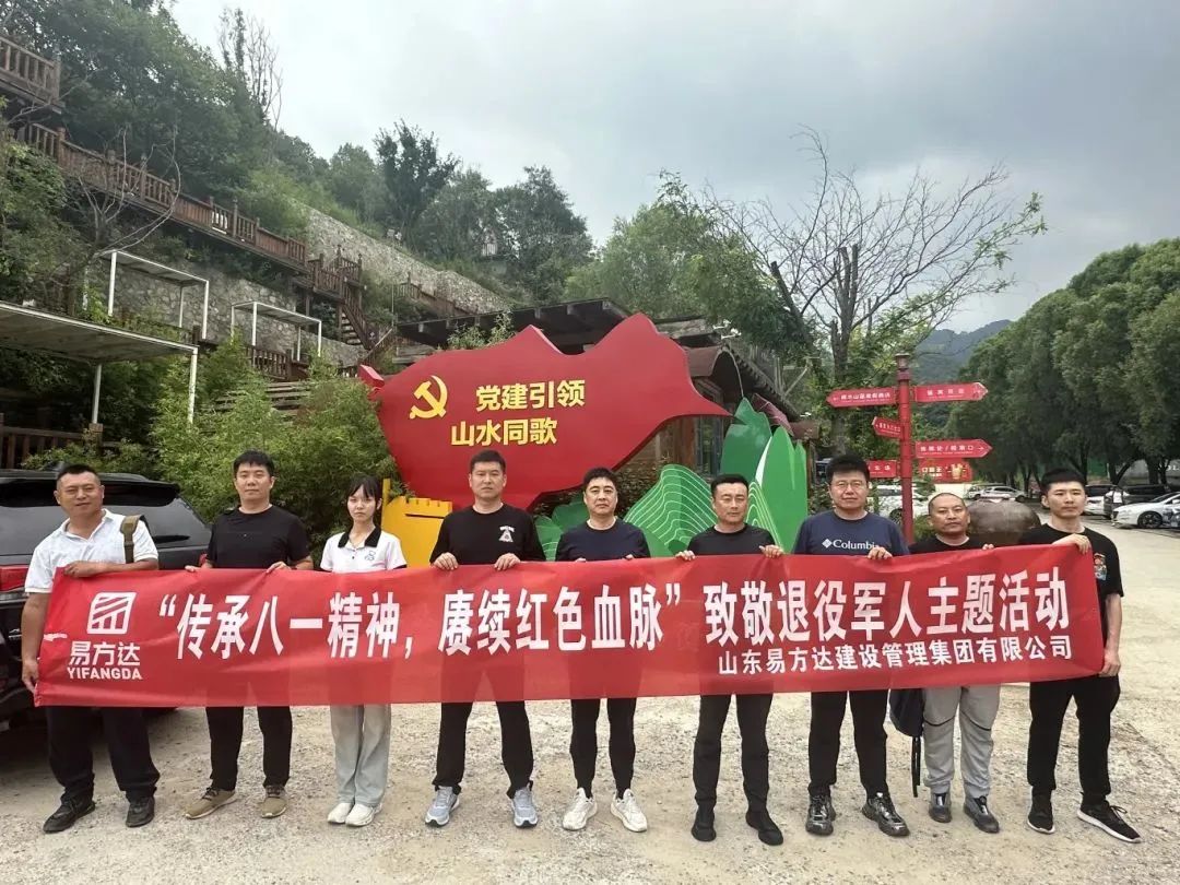 8月1日,山東易方達建設管理集團有限公司工會組織全體退伍軍人開展“傳承八一精神 賡續紅色血脈”致敬退伍軍人主題活動,并召開退伍軍人座談交流會。此次活動營造了濃厚的愛黨愛國、崇軍擁軍的積極氛圍,進一步激勵公司退伍軍人職工珍惜軍人榮譽,表達了退伍不褪色、以熱血繪就奮斗底色的決心。