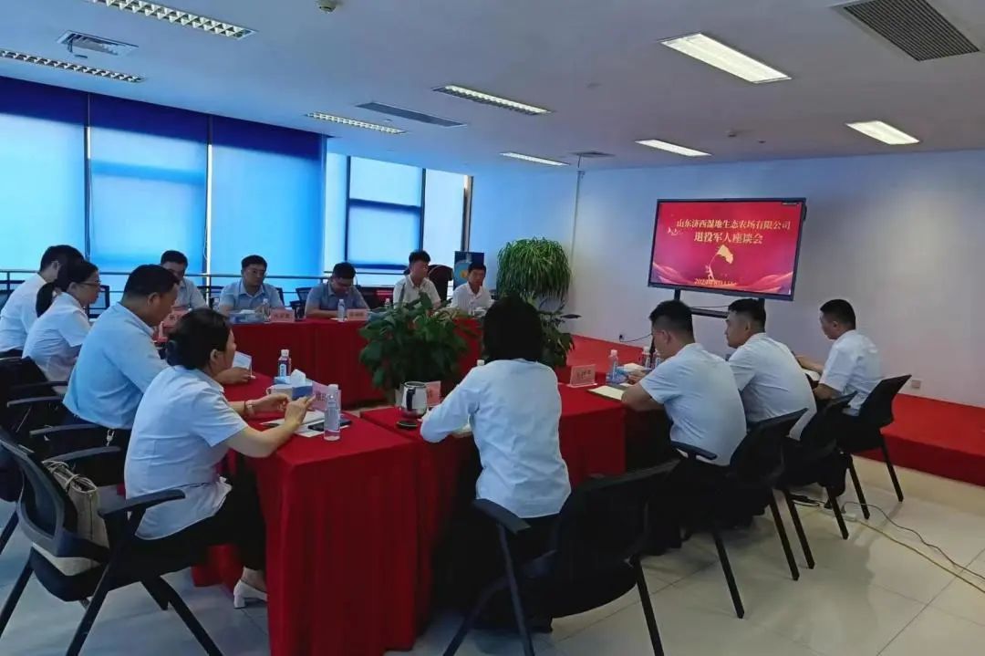 8月1日,山東濟西濕地生態農場有限公司召開“退役不褪志,退伍不褪色”主題座談會,公司中層以上負責人及全體退役軍人參加會議。會上,全體退役軍人面向軍旗重溫軍人誓詞,共同回顧軍旅生涯的點點滴滴,圍繞角色轉變和初心堅守等方面發表感悟,暢談在公司的責任與擔當。