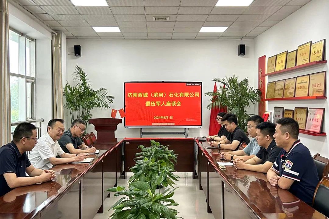8月1日,濟南西城(濱河)石化有限公司召開退役軍人座談會,聽取公司退役軍人的意見和建議,并積極做好退役軍人服務管理工作。會上,退役軍人交流了離開部隊后工作、生活經歷和感受,表示將在各自的崗位上繼續發揚革命軍人的戰斗作風與奉獻精神,立足本職、愛崗敬業,為石化公司爭光,為退役軍人添彩。