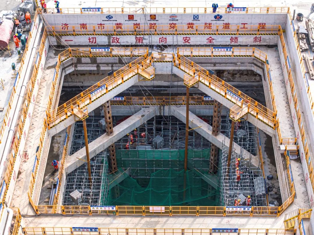 作為國內水下最大直徑的盾構隧道的濟南市黃崗路穿黃隧道工程,目前正在開展北岸始發井、南岸接收井及機架段的開挖支護和結構工程的施工。其中北岸始發井主體結構施工,已完成70%,預計2024年5月份能完成頂板封頂工作;南岸接收井及明挖段圍護結構已施工完成,正在進行土方開挖及主體結構施工,預計2024年底能夠完成全部主體結構施工。同時,盾構機預計2024年5月份能夠下線、進場組裝,計劃年內進行盾構始發。