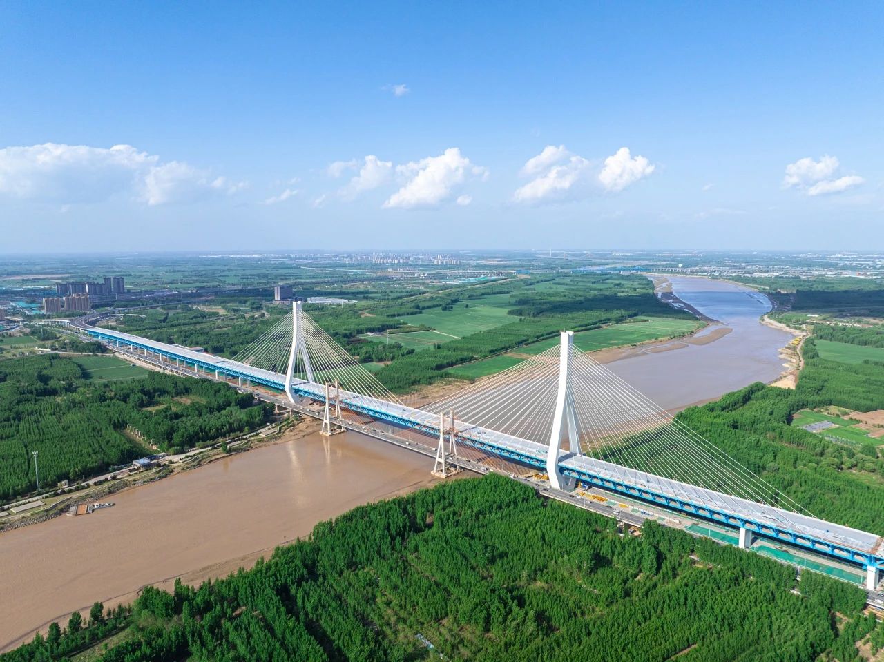 G104京嵐線濟南黃河公路大橋工程作為連通濟南市主城區和起步區的重要通道,是濟南市“四橋四隧”規劃建設的重要組成部分,全長7.748公里。零點立交改擴建工程是整個黃河大橋工程的重要樞紐,建成通車后為五層渦輪型樞紐立交,主線設置為濟廣高速主線橋和黃河南岸主線橋,共設置14條匝道,改造濟廣高速主線路基段長度372.1m,橋梁長度1629.6m,其中橋梁加寬改造長度80m,拆除重建橋梁1549.6m。項目建成后將實現高速公路、城市快速路和城市主干路之間的交通轉換,有效解決城市立交出入口常見的車輛交織問題,對改善濟南市區與黃河北部地區的交通出行條件、緩解交通壓力、提升通行能力具有重要意義。