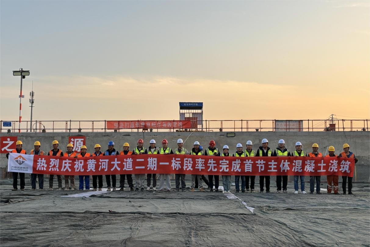 濟南黃河大道二期工程施工一標段率先完成首節主體混凝土澆筑。黃河大道二期工程首節主體長35米,寬30.3米,高9.2米,由底板、側墻、頂板三部分組成,所用材料主要為C40補償收縮混凝土,抗滲等級P10。為了保障主體混凝土澆筑質量與進度,項目部周密策劃組織施工,積極落實澆筑技術質量安全交底,統籌調配人材機配置與進場,鉚足干勁、團結協作,順利完成首節主體混凝土澆筑。作為濟南新舊動能轉換起步區的重點項目,首節主體澆筑是黃河大道二期工程建設的又一重要工程節點。