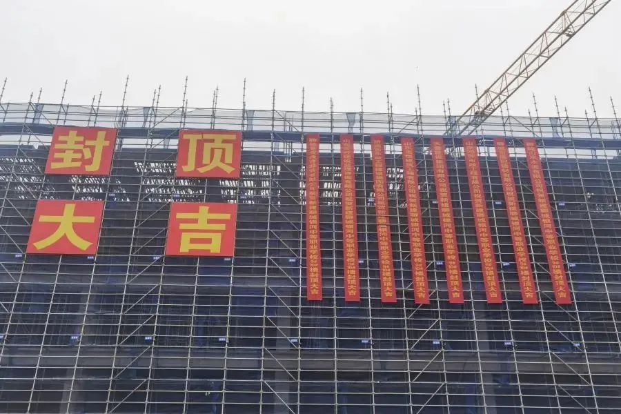 聊城銀河中等職業學校項目是聊城市重點民生工程,項目建成后將有效緩解片區教育資源緊缺問題,進一步完善片區教育資源配套設施。本次封頂的9#宿舍樓共5層(地上4層,地下1層)、10#宿舍樓共6層(地上5層,地下1層)。自項目啟動以來,項目部充分發揚“城建鐵軍”精神,克服多班組交叉施工、天氣不利等因素,緊扣工期目標,注重工程建設品質,加大人力物力投入,合理配置現場資源,保質保量推進工程進度,成功完成各項節點目標。