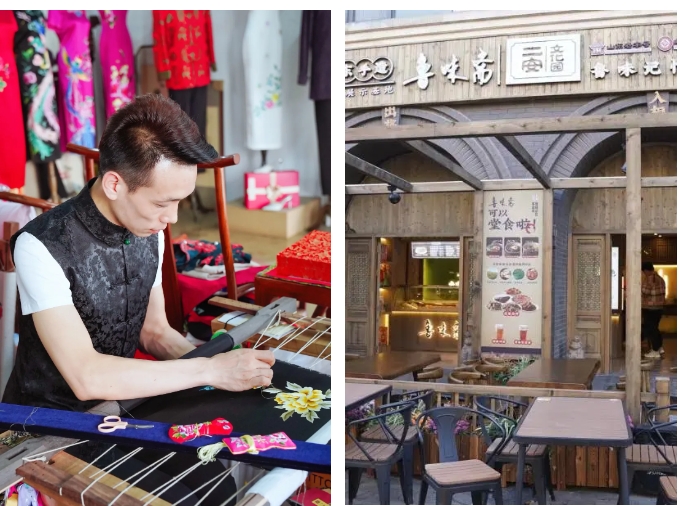 景區內設有非物質文化遺產傳習基地、戴記魯繡旗袍、魯味齋、二安文化園等非遺展示店鋪,集中展示了濟南市技、趣、鮮、醫、藝等諸多方面的人文歷史,是槐蔭區非遺文化的地標性景區。
